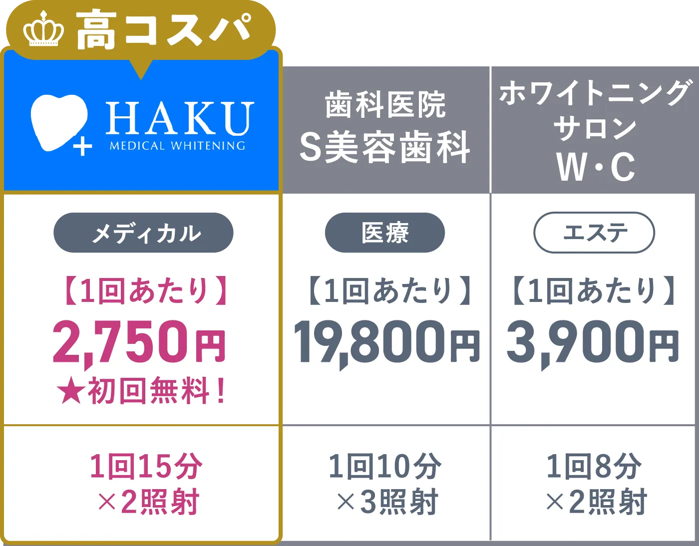 安全にかつ満足度と効果が持続する確かなサービスを低単価で実現できるのはHAKUだけ。