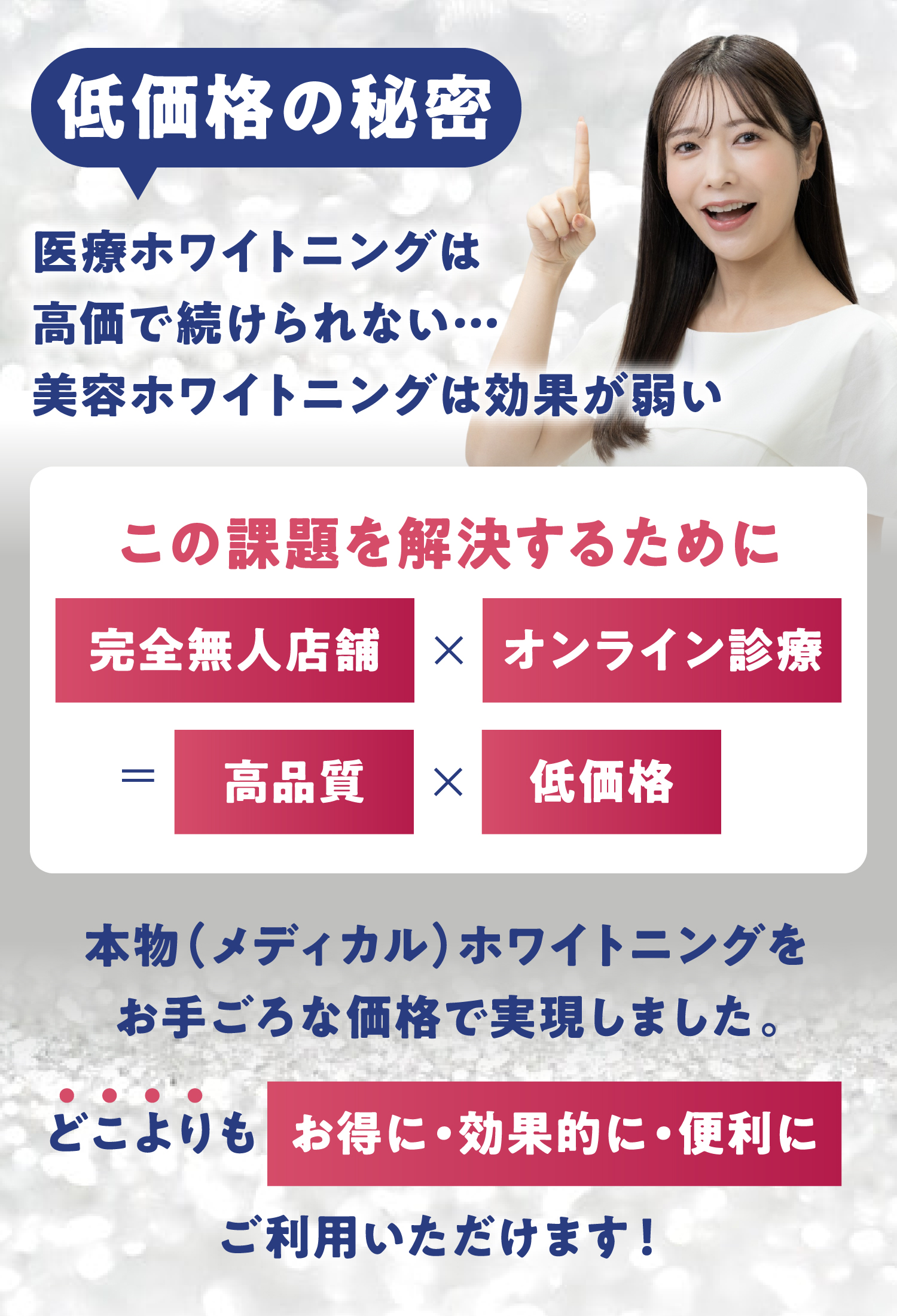 HAKUなら自分のペースで白さを調整できる本物の医療ホワイトニングを実現。タイムパフォーマンス最強の自分磨きを叶えます。